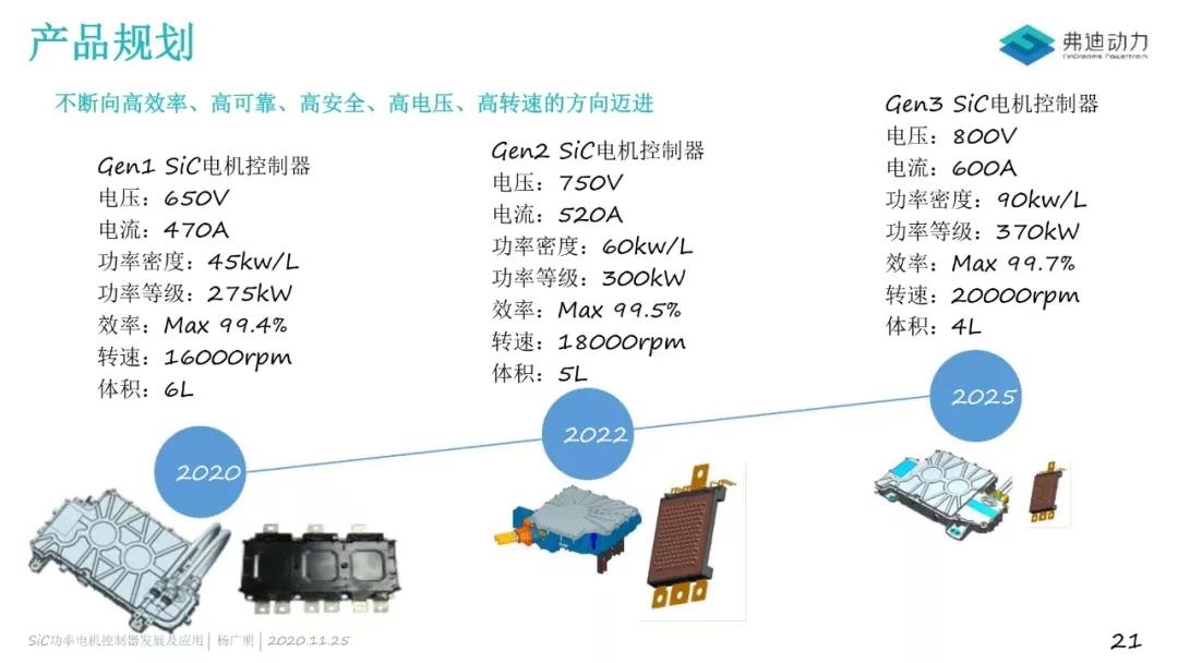 比亞迪BEV的電驅動供應包含弗迪動力的三合一以及華為的六合一。熱銷車型匹配的動力總成如下: 元/海豚/e2等A0級轎車和SUV普遍采用功率70kW、轉速15000rpm的三合一電驅動總成,功率模塊為IGBT模塊; 秦PLUS EV等A級轎車多匹配100kW、12100rpm的三合一電驅動總成;宋PLUS EV匹配135kW、轉速15000rpm的三合一電驅動總成。 漢EV單電機版功率為163kW,轉速為15500rpm,雙電機版再增加200kW的電機。與上述動力總成不同的是,200kW的三合一采用了SiC Mosfet功率模塊。 此外,2021年10月比亞迪SOP一款宋PLUS EV,匹配華為的六合一動力總成系統(tǒng)(電機+電控+減速器+OBC+DCDC+PDU)。峰值功率123kW,轉速17600rpm。該車的量還未起來,需要時間。 蔚來ES8/ES6/EC6/ET7的系統(tǒng)供應商皆為蔚然動力,電機、電控由蔚然動力提供,減速器來自蔚邦傳動和格特拉克。 部分EC6和ES6采用的前后電機都是160kW、15000rpm的永磁同步電機,繞組形式為扁線電機;其他EC6、ES6和ES8采用的前電機為160kW永磁電機,后電機升級為240kW的異步感應電機。到了ET7,前電機為永磁同步電機,峰值功率180kW,轉速16000rpm,后電機為異步感應電機,功率300kW,轉速15000rpm。 扁線、永磁+感應電機,已經成為蔚來動力總成的顯著特征。而且,蔚來正在為動力總成增加另一個特征:碳化硅。 ET7是蔚來搭載了碳化硅功率模塊的新一代高效電驅平臺的首發(fā)車型,接著是最近NIO DAY上發(fā)布的ET5,也將采用碳化硅電驅系統(tǒng),百公里加速僅需4.3秒。 特斯拉是前永磁后感應電機的“鼻祖”,Model 3和Model Y配套的永磁電機功率覆蓋180kW到220kW,感應電機只有一款,峰值功率137kW。 除了電驅動系統(tǒng)變動不大以外,特斯拉一直堅持使用SiC MOSFET功率器件。2018年特斯拉發(fā)布的Model 3開始采用ST的SIC MOSFET逆變器;到2020年推出的Model Y據(jù)Munro & Associates拆解分析,后輪驅動的動力總成也采用了SiC MOSFET;今年6月的新款Model S Plaid沿用碳化硅技術。 據(jù)IDTechEx數(shù)據(jù),對比2018年Model 3逆變器和2020年Model Y第二代逆變器的估算成本,短短三年內,特拉斯的SiC逆變器成本大幅下降,其成本幾乎與2019款日產聆風和捷豹I-PACE 的硅基IGBT模塊相當。