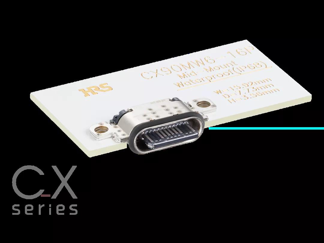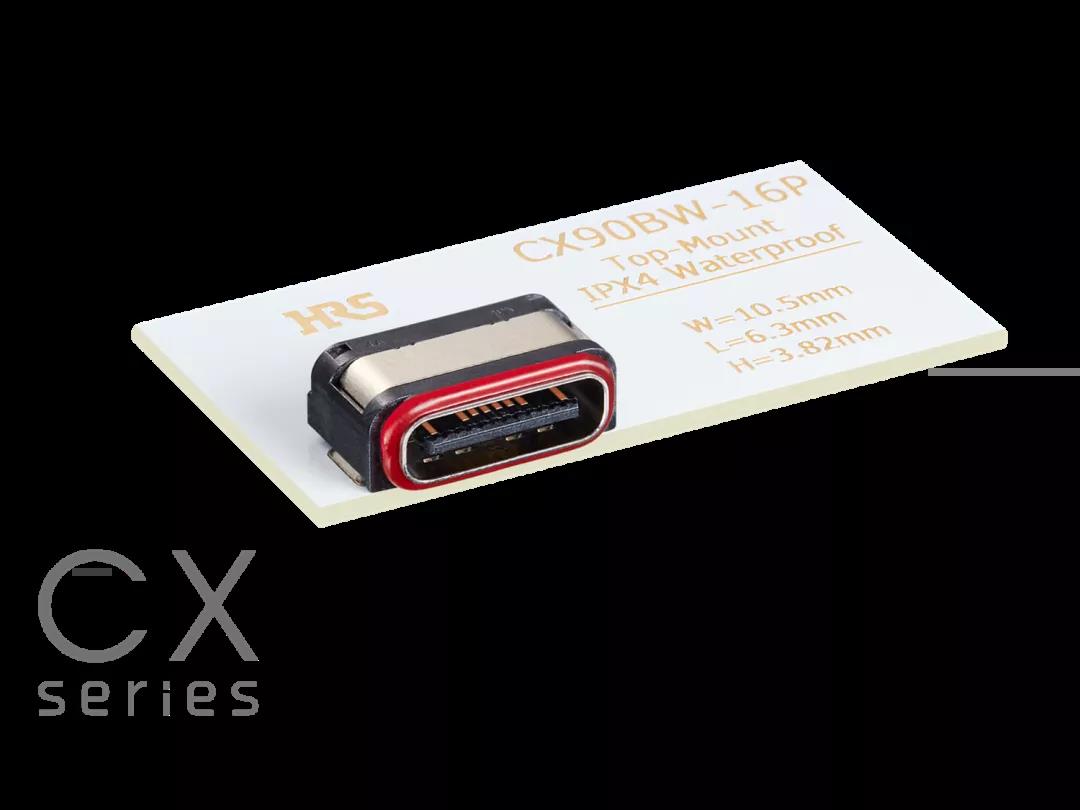 1廣瀨電機為Type-C連接器CX系列開發(fā)出了一種新插座,本次發(fā)布的是支持IPX4防水的板上式16芯 “CX90BW-16P”。