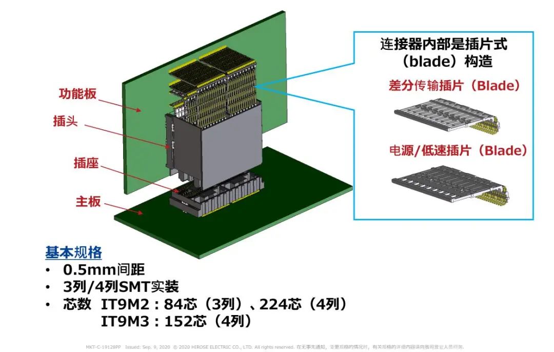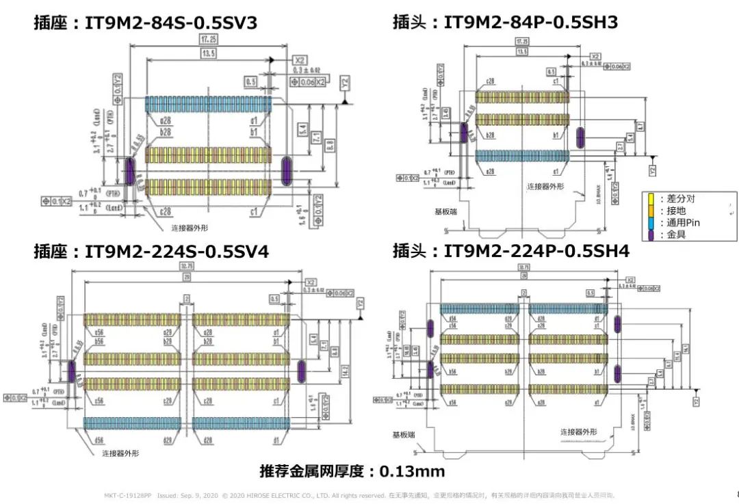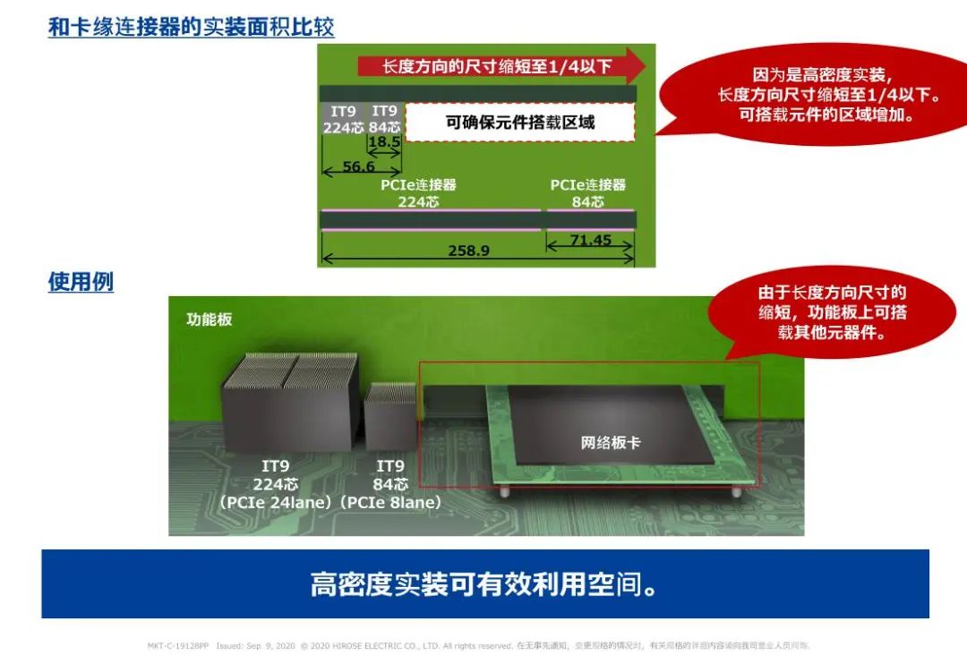1 支持高速傳輸(28 + Gbps) 2 高密度: 50差分對/inch(224芯) 3 浮動構(gòu)造: 可以在同一基板上實(shí)裝多個(gè)連接器 4 選型 芯數(shù):84芯、152芯、224芯 對應(yīng)PCI Express 4.0/5.0