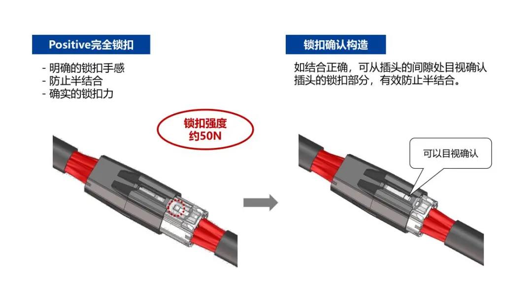 2. 清晰的鎖扣感和目視可確認(rèn)是否鎖定